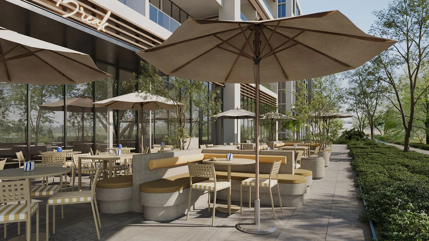 Located in the hub of new Sharjah, we brought Break’s aroma of freshly baked pastries and the harmonious melody of brewing coffee through our designs to a popular destination known for coffee, breakfast, lunch, and dinner.